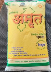 रेस्टोरेंट में छत्तीसगढ़ सरकार द्वारा गरीब परिवारों को मुफ्त वितरित किए जाने वाला ‘अमृत नमक’ बड़े पैमाने पर उपयोग किया जा रहा था।