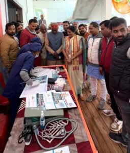 आयोजित निशुल्क स्वास्थ्य शिविर में कुल 95 भाजपा कार्यकर्ताओं एवं आम नागरिकों ने विशेषज्ञ चिकित्सकों से स्वास्थ्य परीक्षण कराया। शिविर में विभिन्न प्रकार की स्वास्थ्य जांचें पूर्णतः निशुल्क कराई गईं। विशेष उपलब्धि के रूप में 80 लोगों को निशुल्क चश्मों का वितरण भी किया गया, जिससे कई जरूरतमंदों को प्रत्यक्ष लाभ मिला। यह स्वास्थ्य शिविर भाजपा चिकित्सा प्रकोष्ठ तथा श्रीराम हेल्थ केयर सेंटर के संचालक विजय दुबे एवं उनकी टीम के सहयोग से सफल हुआ। शिविर में डॉ. सिद्धार्थ सिंह, डॉ. अभिषेक गर्ग सहित अन्य चिकित्सकों की टीम ने सेवाएं देकर आयोजन को सार्थक बनाया।