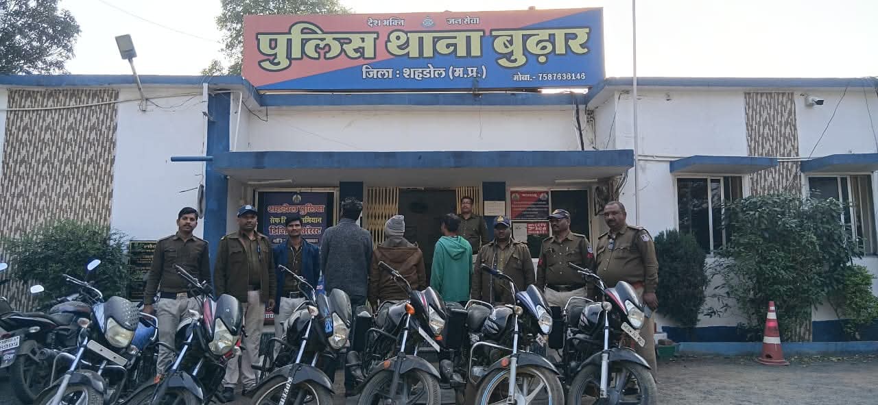वाहन चोरी की वारदातों का खुलासा बुढ़ार पुलिस की बड़ी कार्रवाई, तीन आरोपी गिरफ्तार, 6 मोटरसायकिल बरामद