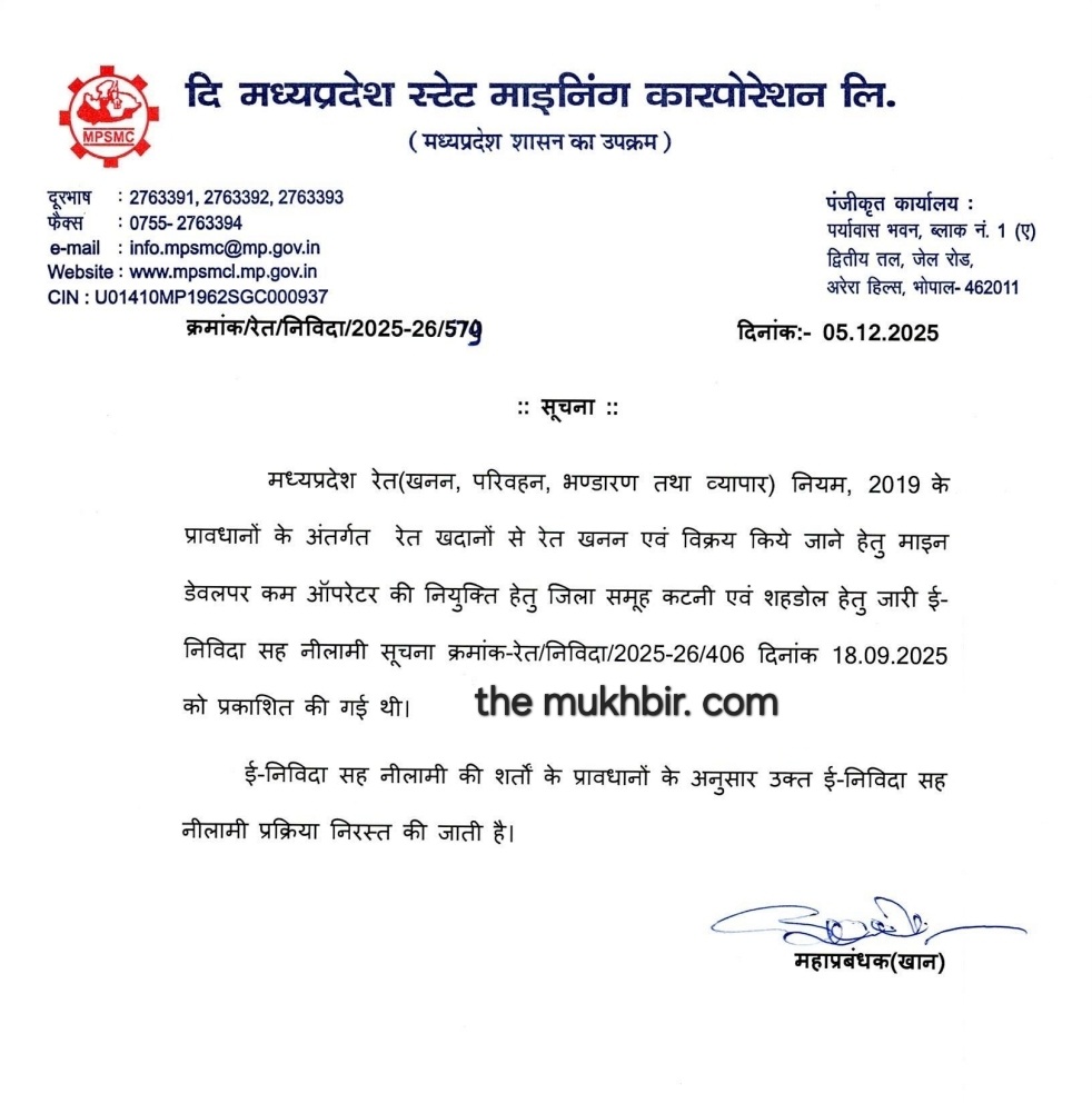 शहडोल रेत खनन पर सरकार का बड़ा फैसला, सहकार का टेंडर निरस्त